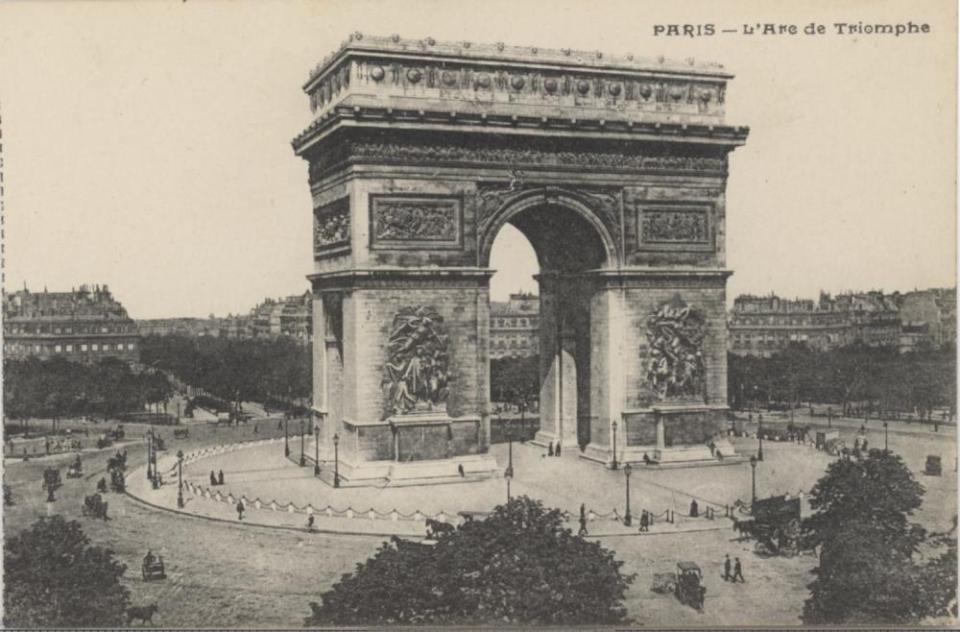 Postcard #21, front view, depicting L’Arc de Triomphe, Paris, France.