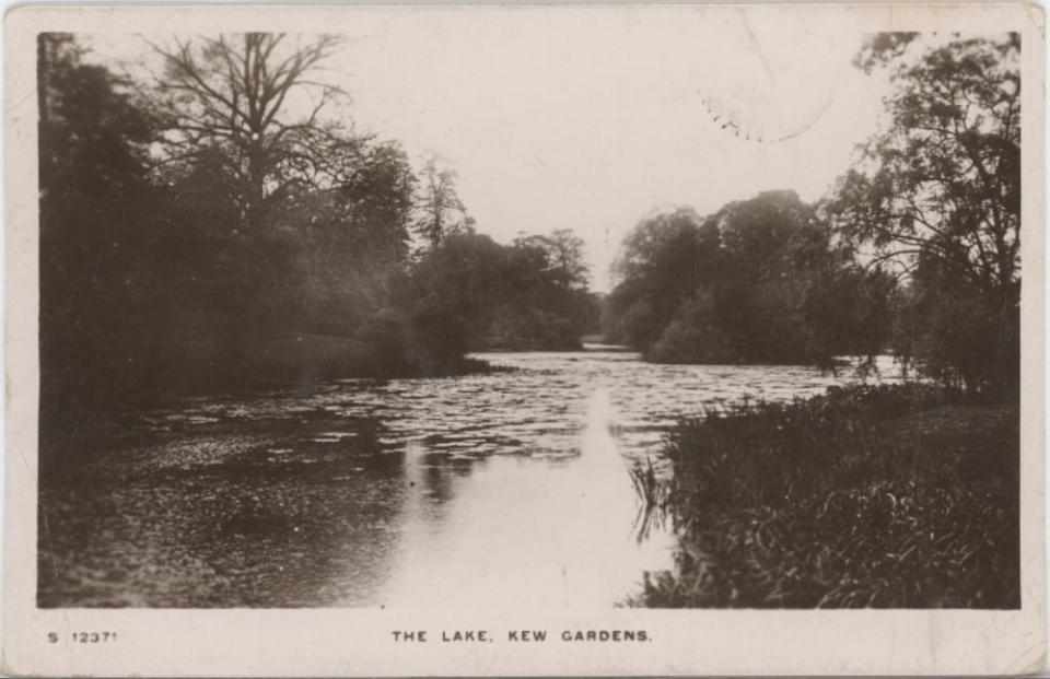 Postcard of October 20, 1917, front view, captioned "THE LAKE, KEW GARDENS."