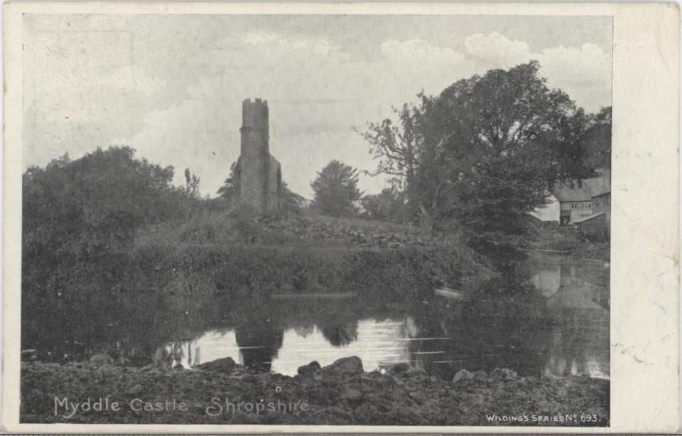 Postcard from March of 1918, front view, captioned "Myddle Castle – Shropshire."