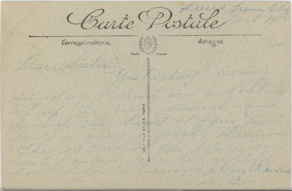 Postcard 4 of 5, October 14, 1918, back view; for transcription see letter entry of same date.